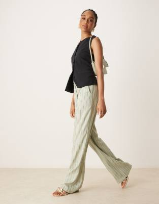 ASOS DESIGN Tall - Pantaloni comodi dritti in misto lino salvia a righe ondulate