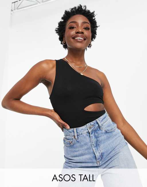 ASOS DESIGN Tall - Top monospalla nero con cut-out