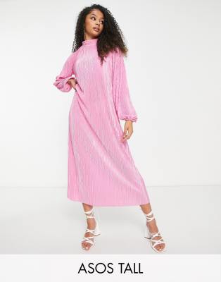 ASOS DESIGN Tall - Vestito lungo accollato rosa chiaro plissé