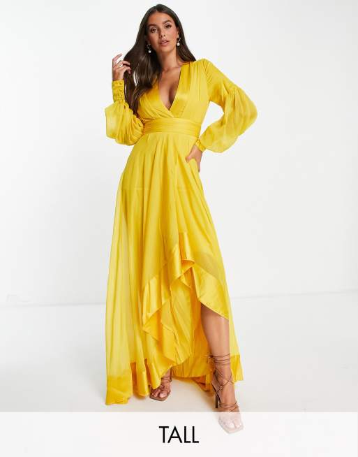 ASOS DESIGN Tall - Vestito lungo giallo con pannelli e cintura in raso