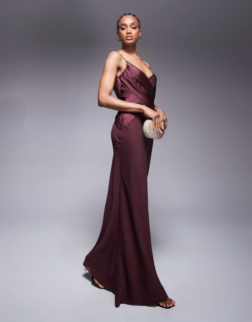 ASOS DESIGN Tall - Vestito lungo in chiffon color cioccolato con strato sovrapposto in raso sul bustino e spalline sottili