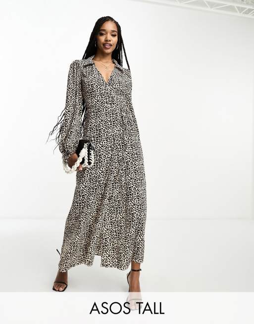 ASOS DESIGN Tall - Vestito midi a portafoglio con colletto e stampa leopardata