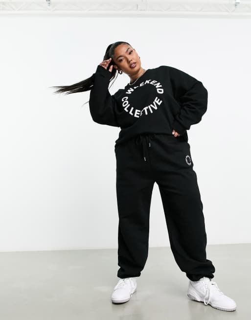 ASOS - Weekend Collective Curve - Joggers oversize neri con logo