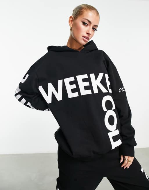 ASOS Weekend Collective - Felpa con cappuccio nera con stampa