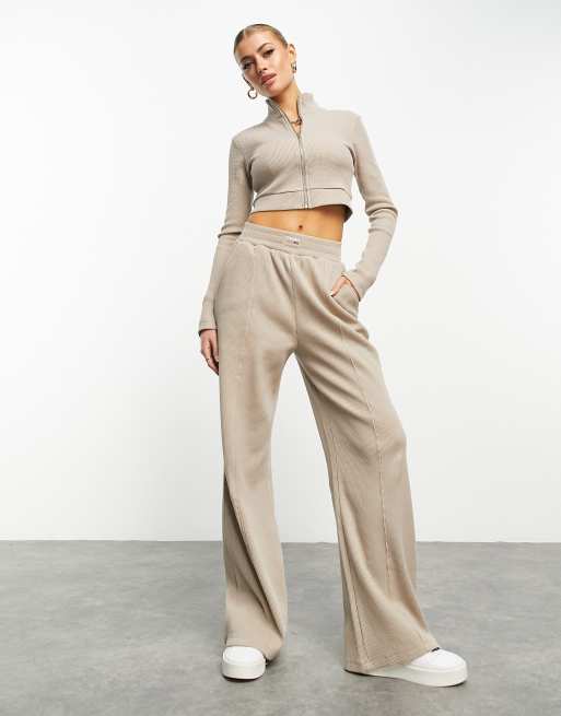 ASOS Weekend Collective - Joggers dritti in tonalità neutrale lavorati a nido d'ape