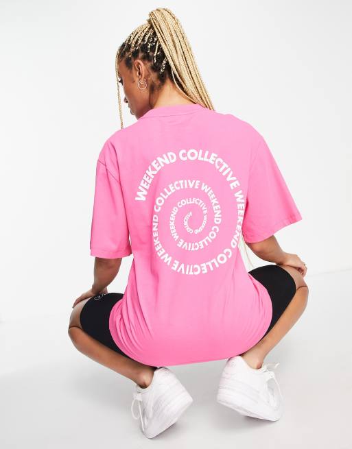 ASOS - Weekend Collective - T-shirt oversize rosa con stampa grafica astratta sul retro