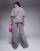 Weekend Collective - Coordinato con felpa a maniche corte e joggers grigio slavato con etichetta rosa