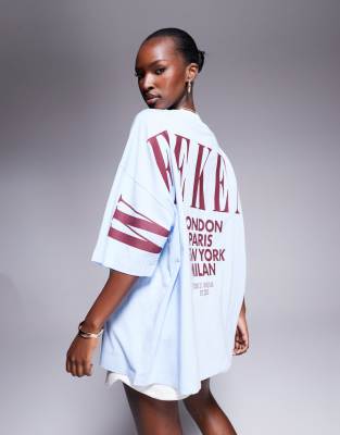 Weekend Collective - Icon - T-shirt oversize blu crepuscolo e bordeaux con logo sul retro