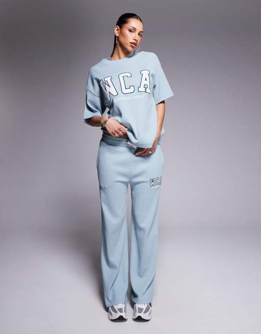 Weekend Collective - Joggers verde salvia slavato lavorati a nido d'ape con logo stile college in coordinato