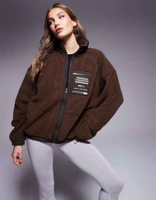 Weekend Collective - Pile soffice marrone con pannello in nylon e zip