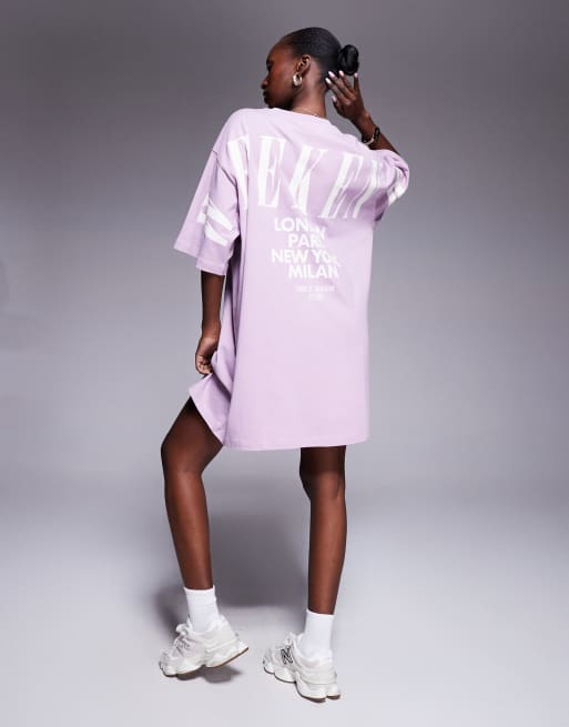 Weekend Collective - Vestito T-shirt lilla e bianco con logo sul retro