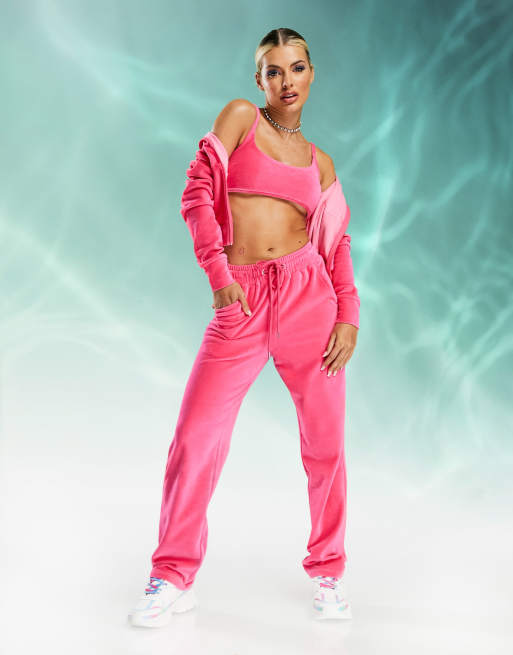 ASYOU - Pantaloni dritti in velour rosa in coordinato