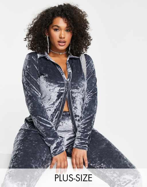 ASYOU Plus - Camicia in velluto riccio grigio