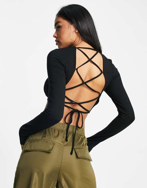 ASYOU - Top a maniche lunghe nero con fascette sottili sul retro