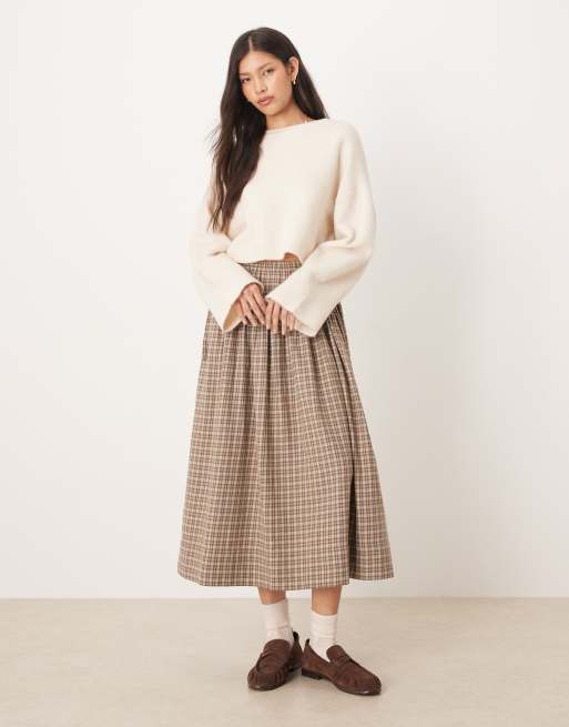 AWARE - Gonna a ruota allacciata in vita beige e marrone a quadretti