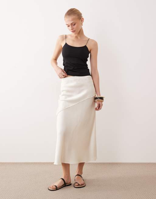AWARE - Gonna lunga in raso color crema con vita scesa