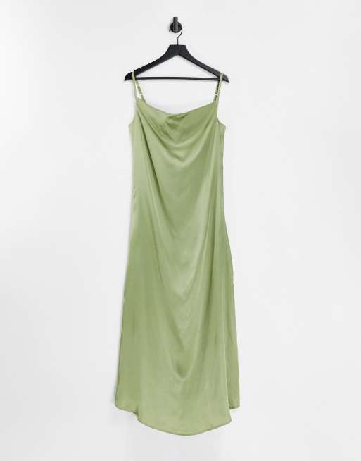 AX Paris - Vestito lungo con spalline sottili in raso verde salvia