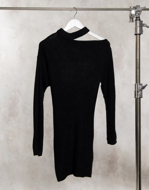 AX Paris - Vestito maglia nero con cut-out sulla spalla