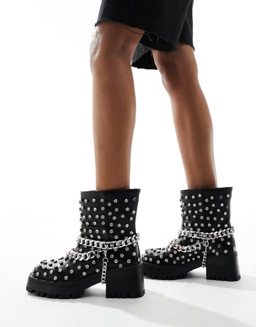Azalea Wang - Coven - Stivaletti neri con suola spessa decorati con borchie