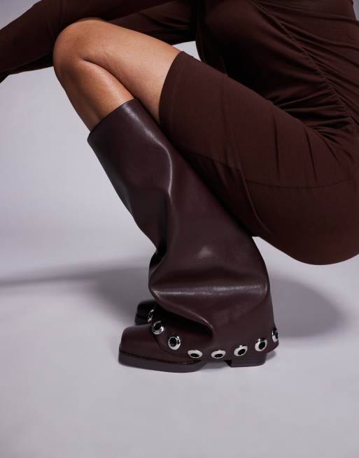 Azalea Wang - Elliot - Stivali al ginocchio marroni con occhielli e design risvoltato