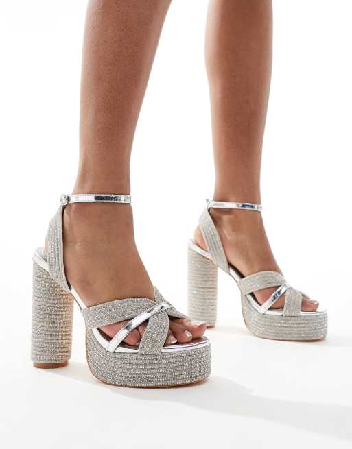 Azalea Wang - Kinslee - Sandali con tacco e plateau argento con decorazioni