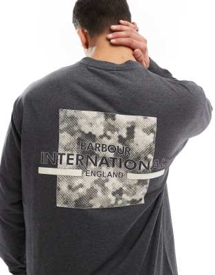 Barbour International - Marsh - T-shirt a maniche lunghe grigio scuro con grafica sul retro