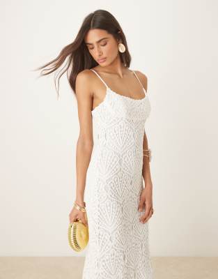 Bardot - Adoni - Vestito midi all'uncinetto bianco orchidea