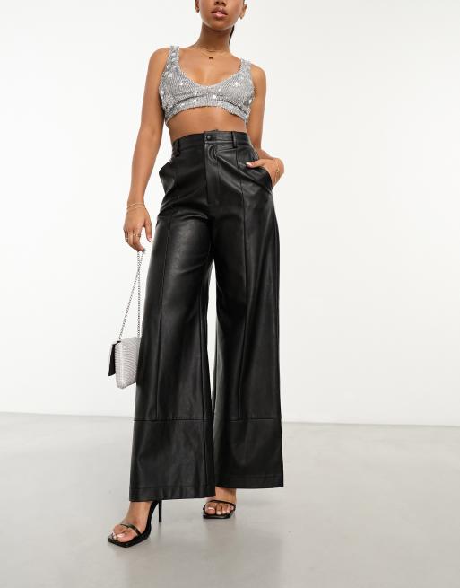 Bardot - Pantaloni neri in pelle sintetica a fondo ampio