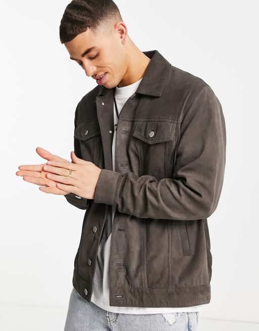 Barney's Originals - Giacca trucker scamosciata grigia