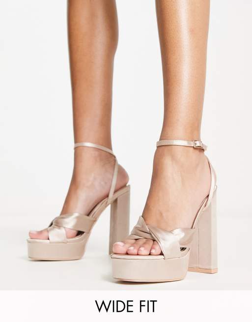 Be Mine Wide Fit - Margot - Sandali con tacco e plateau a pianta larga in raso rosa cipria