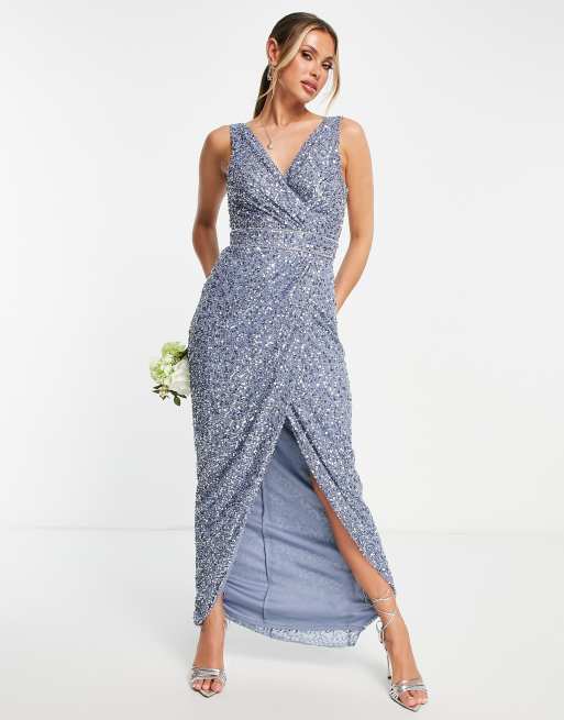 Beauut - Vestito lungo avvolgente da damigella blu scuro