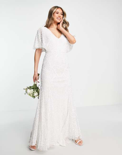 Beauut - Vestito lungo bianco con decoro con perline e volant