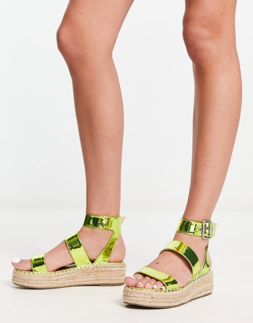 BEBO - Bellini - Espadrilles flatform in tre parte lime metallizzato