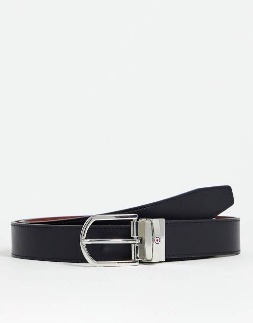 Ben Sherman - Cintura double-face in pelle nera/cuoio