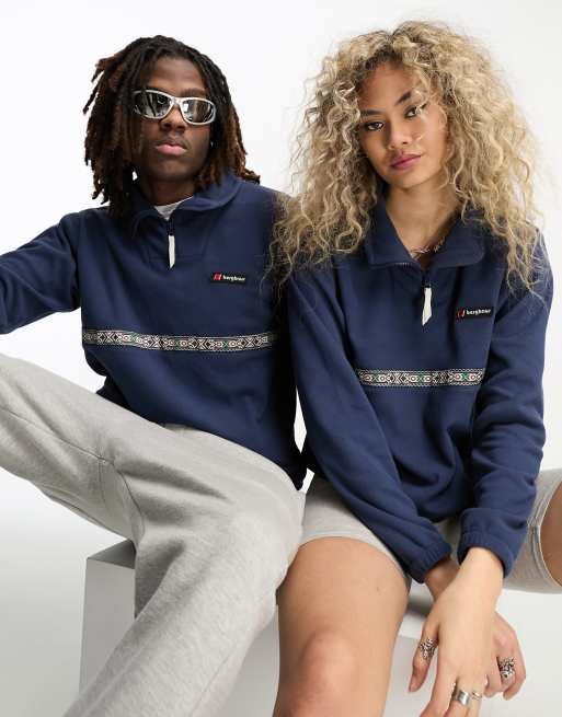Berghaus - QZ - Pile oversize blu navy con finiture azteche