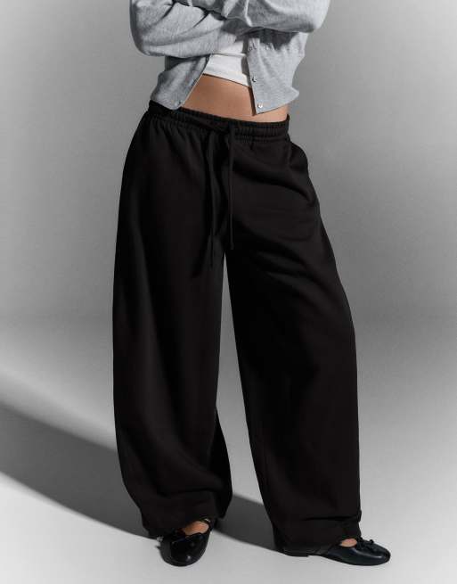 Bershka - Barrel - Pantaloni felpati bombati neri con fermacorda