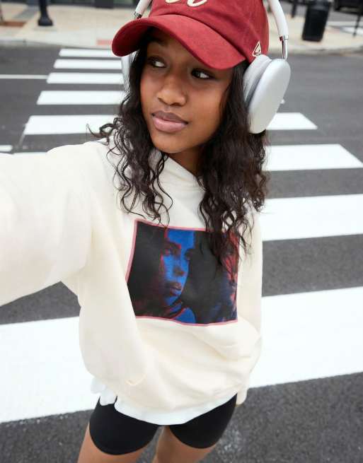 Bershka - Billie Eilish - Felpa bianca con cappuccio e stampa