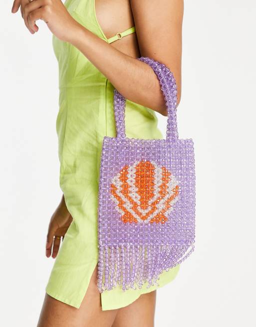 Bershka - Borsa con perline e frange viola con logo a conchiglia