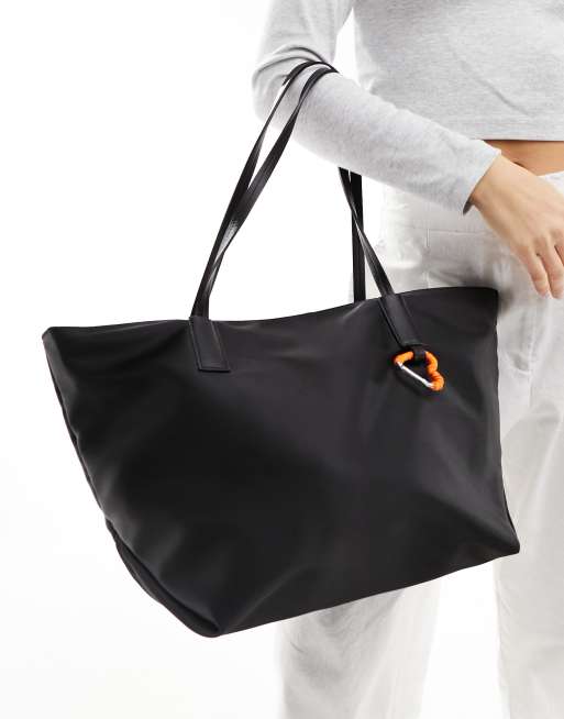Bershka - Borsa shopping nera con moschettone
