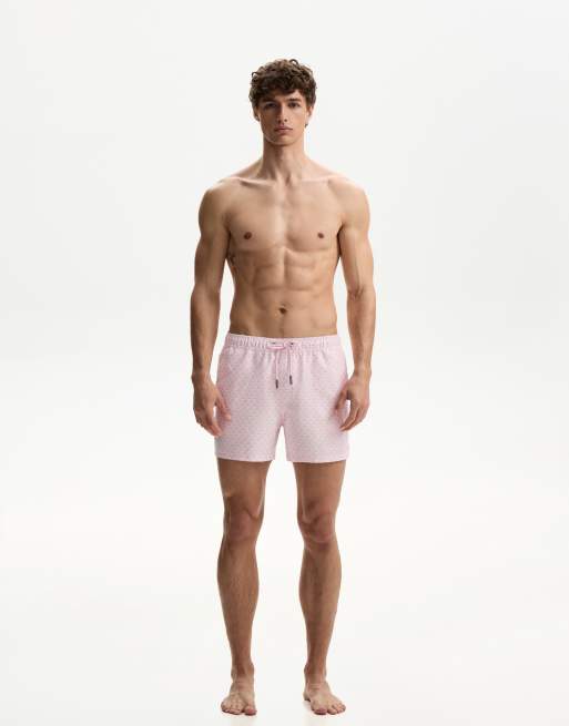 Bershka - Boxer aderenti da bagno rosa chiaro con stampa