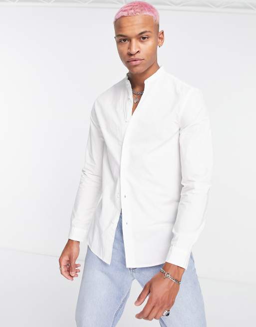 Bershka - Camicia a maniche lunghe bianca con collo serafino