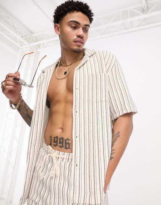 Bershka - Camicia écru a righe testurizzata in coordinato