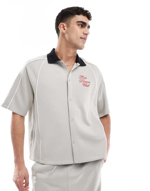 Bershka - Camicia grigia con colletto a contrasto in coordinato