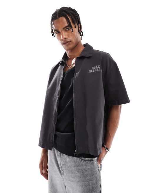 Bershka - Camicia nera con stampa sul davanti e zip