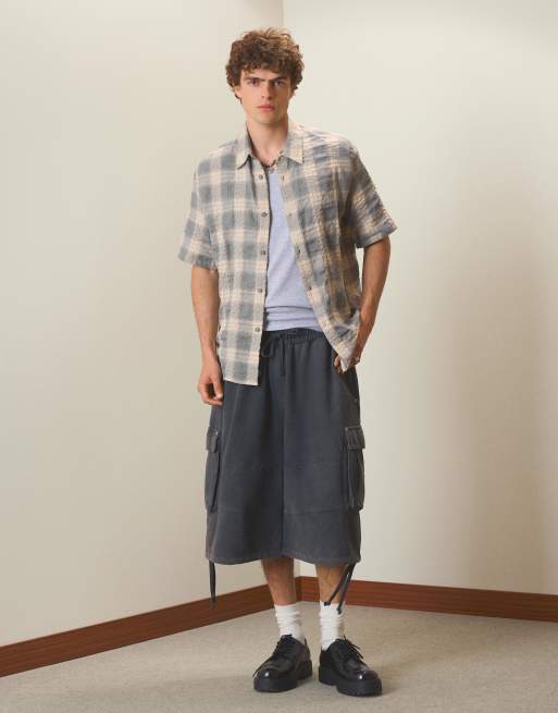 Bershka - Camicia vestibilità comoda a quadri color grigio chiaro
