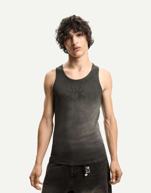 Bershka - Canottiera a coste bianca e nera con stampa