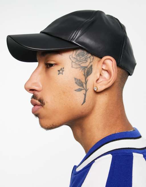 Bershka - Cappello con visiera in similpelle PU nero