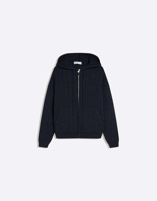 Bershka - Cardigan in maglia lavorata a trecce blu con zip
