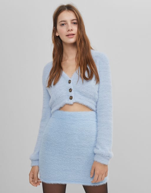 Bershka - Coordinato con gonna e cardigan soffici blu