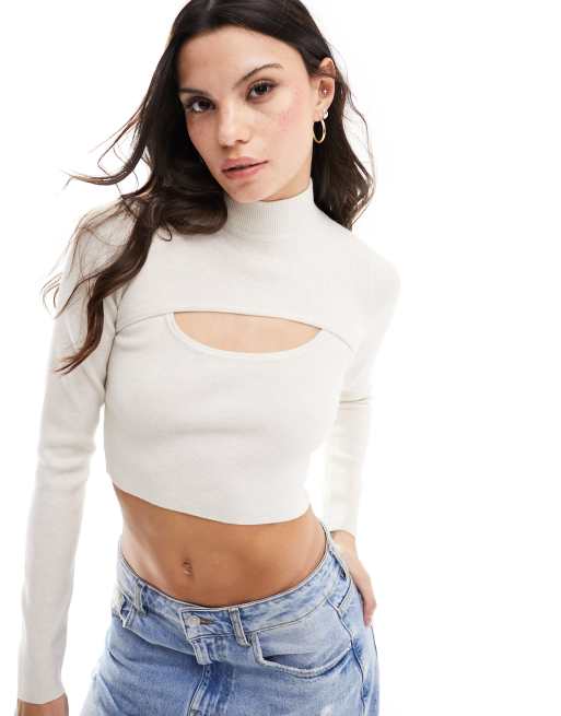 Bershka - Coprispalle écru in maglia 2 in 1 in coordinato